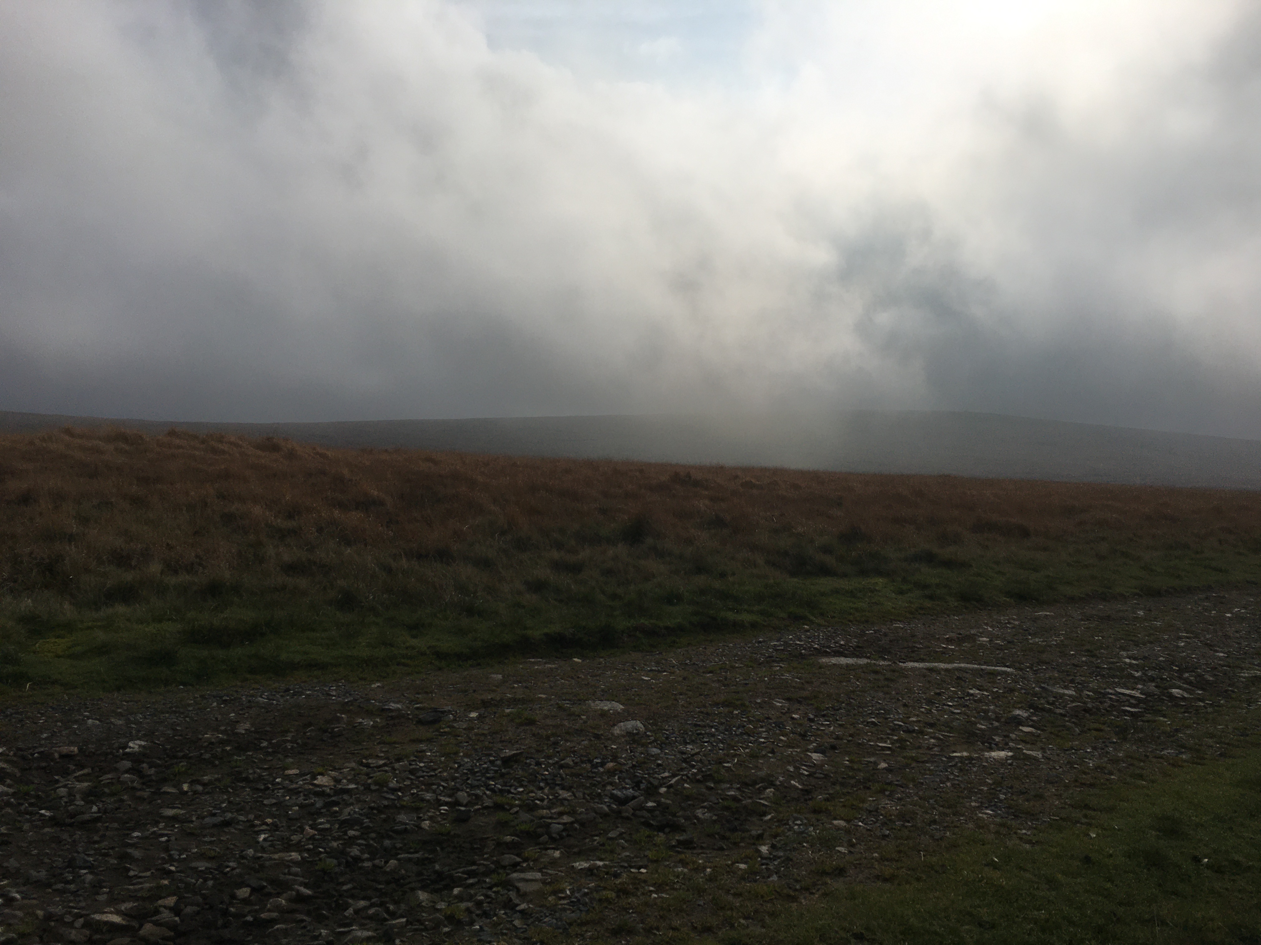 From Winney’s Down we took a bearing for Quinton’s Man Cairn and quickly picked up the markers for the edge of the firing range. From here the path was clear and easy taking us directly to Quinton’s Man Cairn onto Whitehorse Hill following another short section of the Peat Pass and then onto Hangingstone Hill. A quick bearing to ensure we took the right path across the moor down to the disused knack mine on what was quickly becoming a misty late morning.
