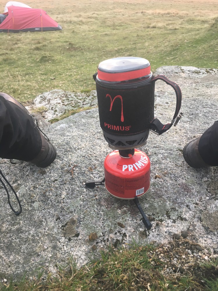 From there we skirted Taw Marsh and made our way up Metheral Hill and then across to Hound Tor for our first nights camp. There were no obviously paths and the going was quite tough across rough moorland and we arrived at about 5:30pm giving us about an hour of light to set up camp and get dinner on the go.