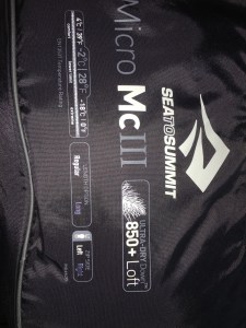 Sleeping bag is a Sea to Summit Micro McIII and is definitely one of my more extravagant purchasers as being warm, but being able to pack it down small and keep weight down is really important, and although it quotes 4 degrees as the comfort level and -2 as lower limit, the addition of a fleece liner will keep you snug as a bug at -5 easily, trust me because I have done this on a couple of occasions! I think I would be okay as low as -10 before I needed to wear some thermals. It also zips open completely and can be used more duvet like on a warmer night.