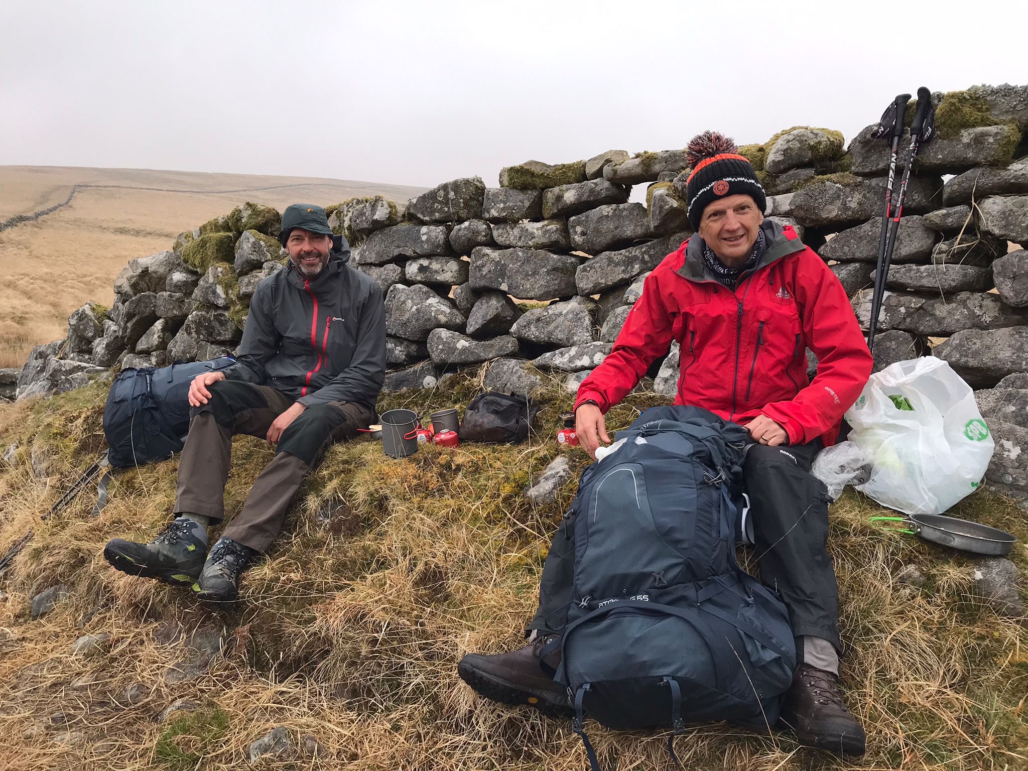 A beautiful but cold evening with the pesky easterly still blowing and a relatively early to bed at about 9:30pm. I Slept well despite the wind and although everything had dried out in the evening we woke to the gentle pitter patter of rain which wasn’t at all helpful. The decision was made to just have a brew and get going and stop for breakfast when the weather improved. After a couple of hours it was much better and we found some shelter behind a wall down in a valley and cooked breakfast.