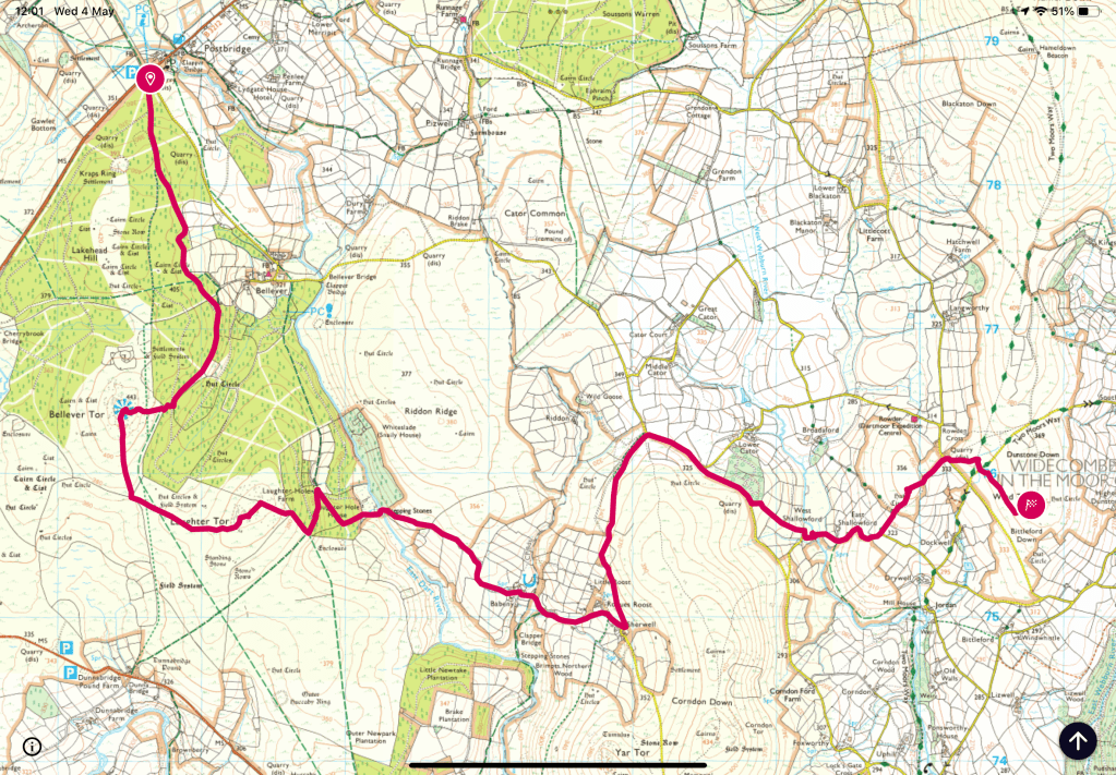 We then did the short drive to Postbridge where we parked up at the visitor centre for a very reasonable £2 per day! From there we worked our way up onto the moor to Bellever Tor and across country to Dunstone Down for our first night. Although a nice part of Dartmoor this area has far fewer places to camp and you need to check the Parks interactive map to be sure you are somewhere permitted.