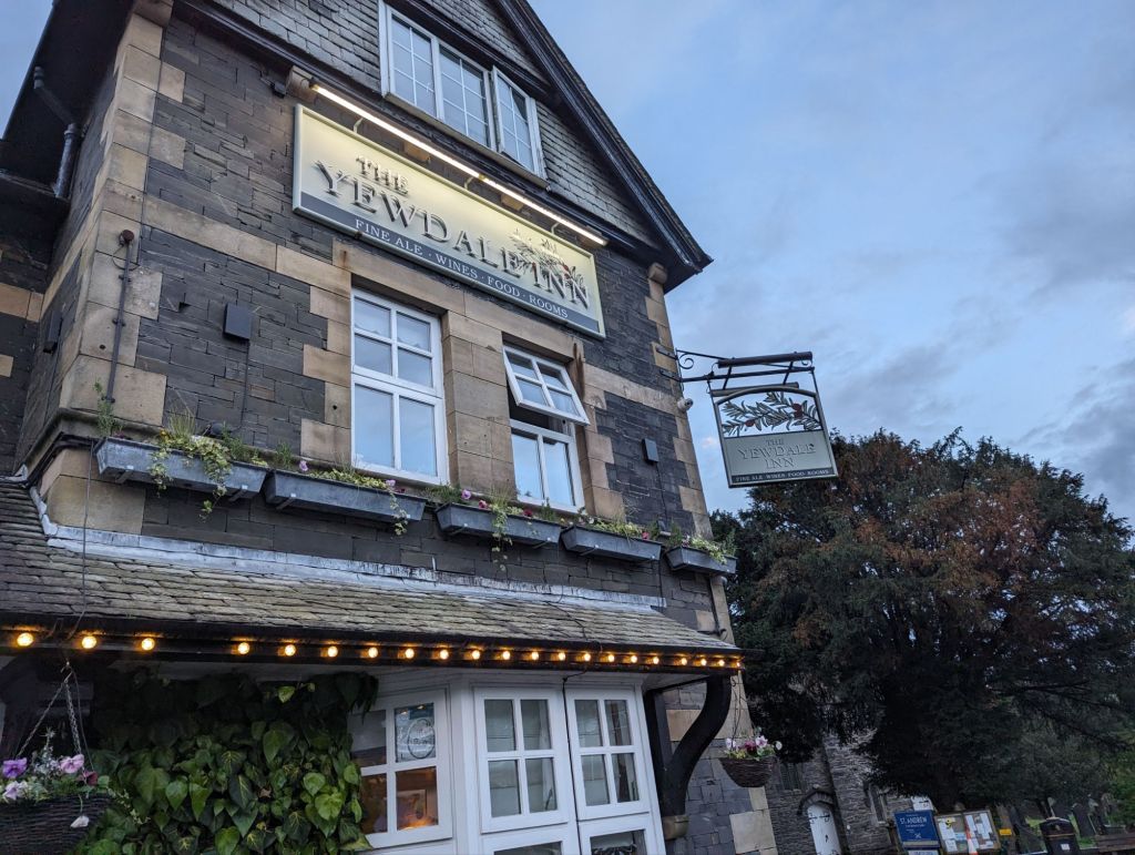 Ulverston to Coniston – 17.75 miles through rolling countryside and probably more than expected. Weather was warm if a bit overcast for 3/4 of the walk with the last 1/4 very wet until we reached the Yewdale Inn, our stop for the night.