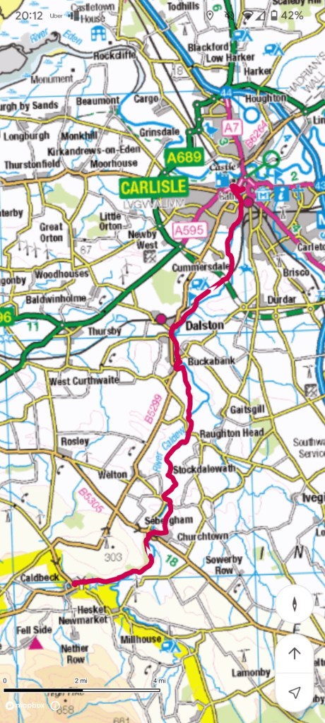 Caldbeck to Carlisle and the last day. Sunny and hot for most of the day but thankfully easy walking and just 15 miles to the end. Very different terrain today and more like home through pastureland and woodland. Following rivers for most of the day. We even stopped for a cheeky beer at about half way point. Then the train back to Ulverston via Lancaster. All done!