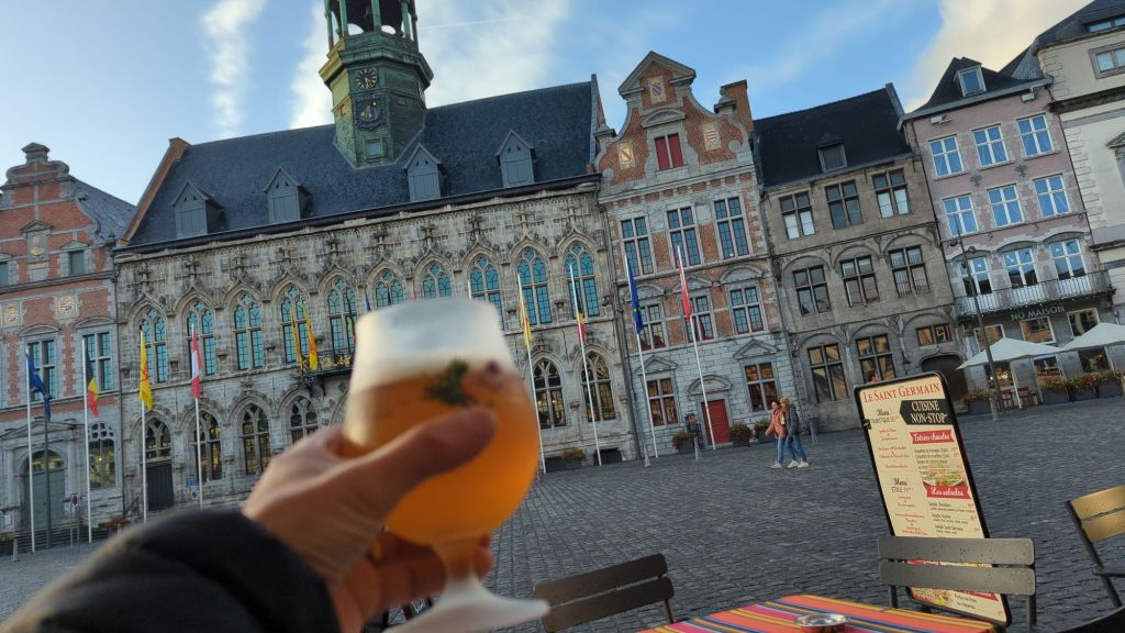 The rain actually stopped not long after we arrived so we walked into Mons which was quite a stunning town full of cobbled streets and narrow roads all leading to the very impressive square in the centre. After a bit of a wander we decided to bust the budget even more by having a beer at a place on the edge of the square. Very nice it was too!